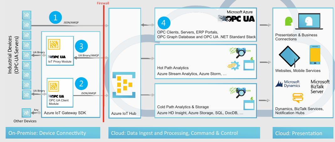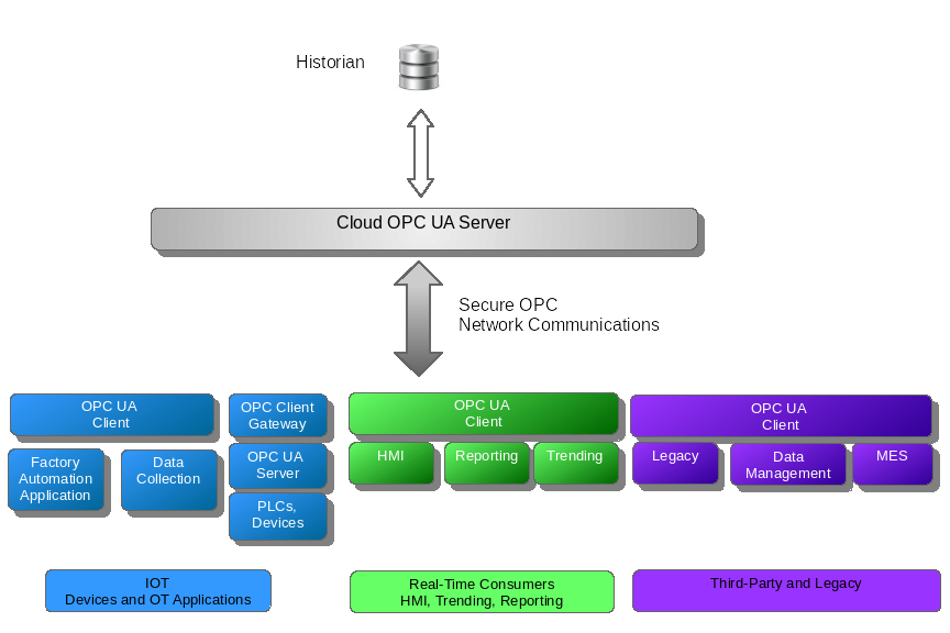 Exchanging data with the Cloud has never been easier - or more familiar. Connect from any OPC-UA client to a secure, OPC-UA server in the Cloud - technologies you understand and trust. No more proprietary IoT solutions, different vendor "gateways" or Cloud IoT packages. Save time and cost by building your SCADA and manufacturing applications with solutions you already know.